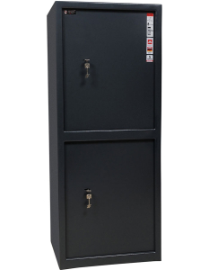 - Нижняя секция сейфа имеет одну полку (две зоны хранения), полка переставляется по высоте на любой уровень благодаря удобной системе регулируемых направляющих.
