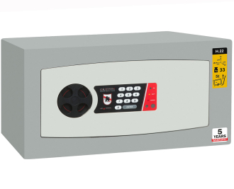 Оборудован электронным кодовым замком Griffon.Замок питается от четырех батарей типа "АА", которые находятся в середине сейфа. Время их функционирования 1-1,5 года. Если батареи разряжаются ниже допустимого уровня - то при каждом открытии замка будет звучать длительный звуковой сигнал предупреждения. Если же их все таки не успеют заменить - то на внешней части замка находятся две клеммы, приложив к которым новую батарею типа „крона” (9 В), Вы сможете отворить сейф. Возможно использование батарей типа „крона” (9 В) в качестве основного электропитания, для чего предварительно нужно отсоеденить переходник в сейфе.Электронный кодовый замок разрешает устанавливать 6 цифр в кодовую комбинацию. После 4-х попыток ввода неверного кода замок сейфа автоматически блокируется на 5 минут.