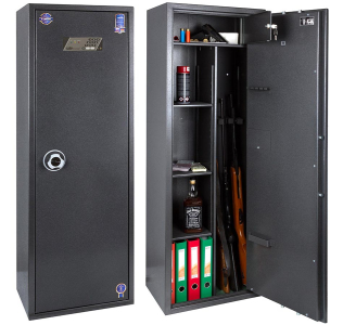 Сейф оружейный Safetronics MAXI 5PE/K4 предназначен для хранения 4х стволов длиной до 1300 мм.