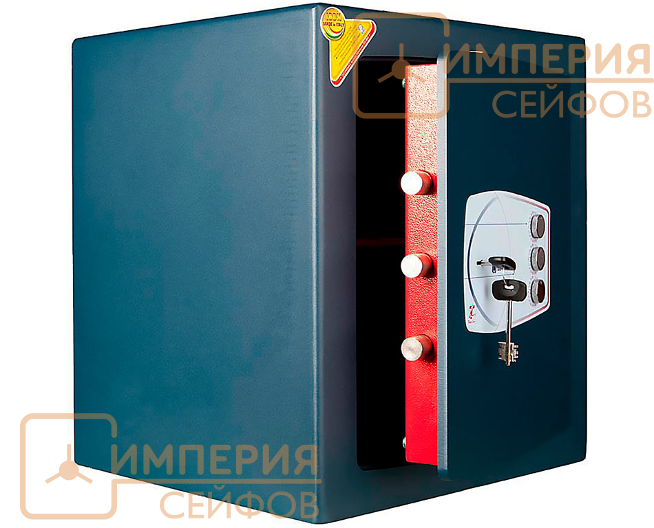 - Оборудован ключевым сувальдным замком высокой секретности с дополнительным механическим кодовым замком (TECHNOMAX), что очень сильно повышает надежность сейфа при попытке взлома.