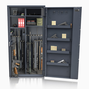 - Имеет три полки, что позволяет использовать три зоны хранения в сейфе для охотничьей амуниции и для хранения документации формата А4.