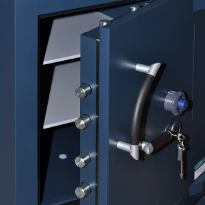 - Наличие перезапирающих устройств для блокировки ригельной системы сейфа, срабатывающих при любом силовом воздействии на ригель, ручку или на замок сейфа.