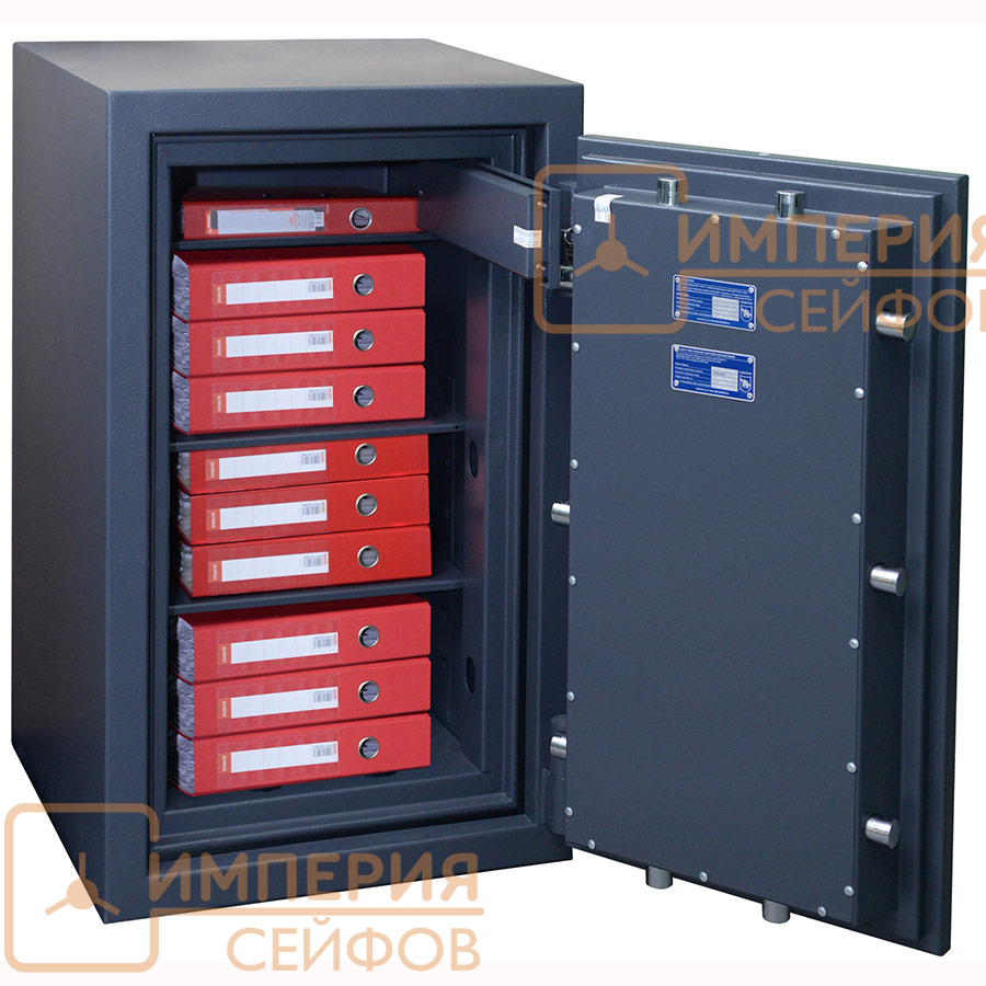 - Оборудован комбинацией ключевого сувальдного замка STUV (Германия - класса VDS1, class A) и электронным кодовым сейфовым замком M-LOCKS (Нидерланды) высокой секретности, сертифицированным на соответствие международным стандартам (класс VDS2, class B). Отпирание сейфа происходит после открытия по очереди обоих замков.