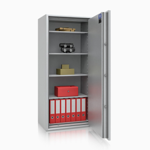- Высокозащищенный сейф с комбирированной защитой, сочетающий высокий уровень огнестойкости 60 минут и высокий клас устойчивости к взлому (Grade I).
