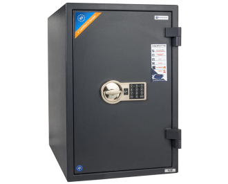 Оборудован электронным кодовым замком высокой секретности, сертифицированный по классу VDS2.Замок питается от батареи типа „крона” (9 В), которая находится в середине сейфа. При недостаточном заряде батареи каждое включение замка будет сопровождаться 10-ти кратным миганием красного светодиода, которая укажет на это. Если же ее все таки не успеют заменить - то на внешней части замка находятся две клеммы, приложив к которым другую батарею, Вы сможете отворить сейф.Электронный кодовый замок разрешает устанавливать 6 цифр в кодовую комбинацию. После третьей попытки ввода неверного кода замок сейфа блокируется на 2 минуты и время блокировки будет увеличиваться при попытке вновь ввести неверный код (максимум до 16 минут).