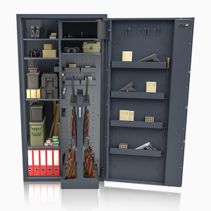 Оборудован боковыми карманами на внутренней стороне двери и на внутренней боковой стенке сейфа для комфортного размещения боеприпасов.