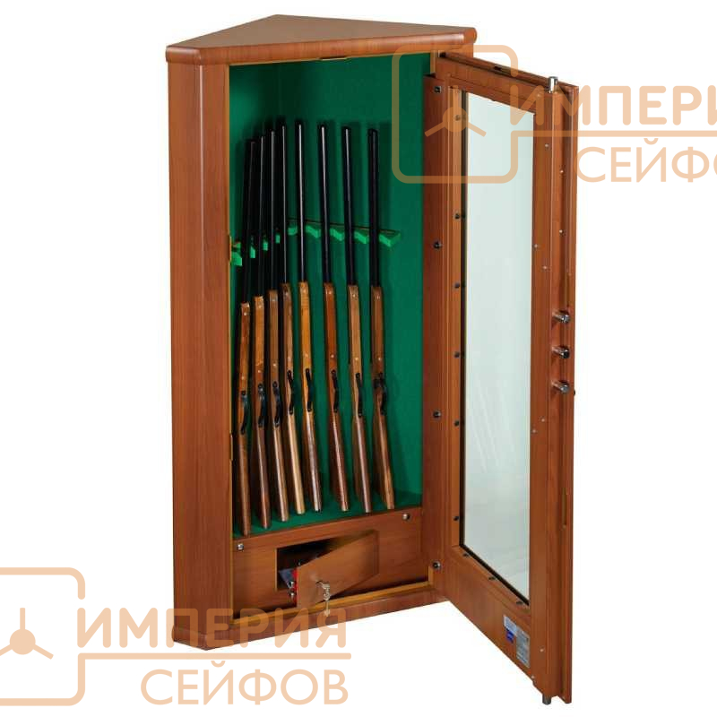 Сейф оружейный METALK Principe M1737564BS разработан специально для размещения в углу помещения и предназначен для хранения 8-ми оружейных стволов длиной до 1400 мм.