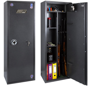 Сейф збройовий Safetronics MAXI 5PE-M/K4 призначений для зберігання 4-х стволів завдовжки до 1300 мм.