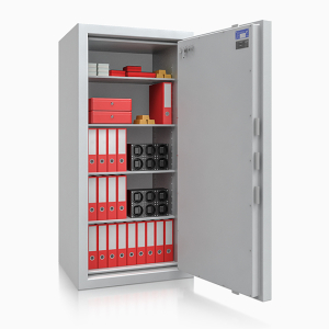 - Простір між стінками корпусу та дверцятами сейфа заповнений запатентованим вогнестійким бетоном. Протипожежний захист протягом 30 хвилин, підтверджений сертифікатом згідно з EN 15659, клас LFS 30P (30 хвилин).